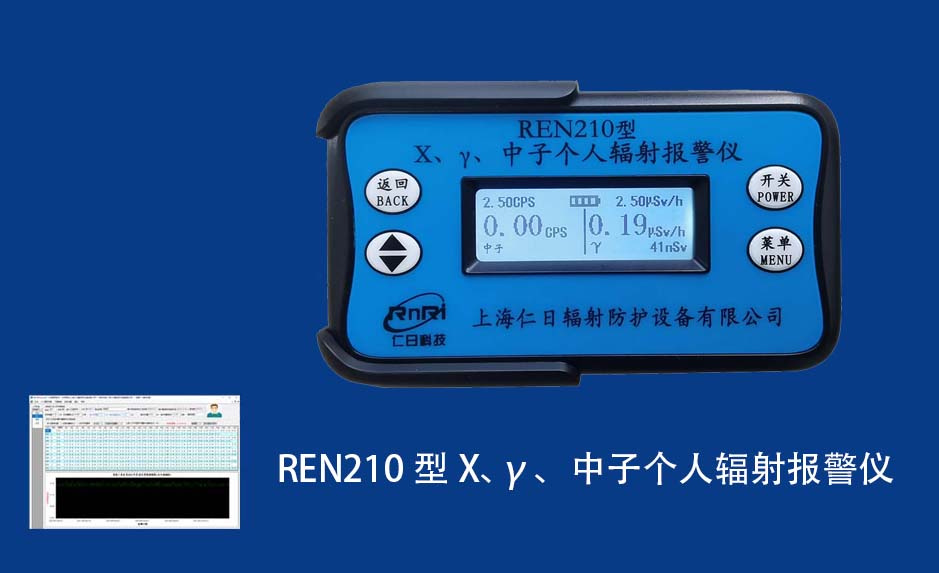 REN210型X、γ、中子個(gè)人輻射報(bào)警儀內(nèi)置SiPM和鋰玻璃晶體組成中子探測器儀器,采用反照率方式探測中子射線,同時(shí)也能探測X、γ射線。因此它可同事監(jiān)檢測X、γ、中子三種射線。能顯示工作場所的劑量當(dāng)量率和累積劑量,更換電池時(shí),日期及累積數(shù)據(jù)能永久保存。可選配RenRiPersonal個(gè)人劑量管理軟件,該軟件可存儲(chǔ)多個(gè)人的歷史數(shù)據(jù),能記錄日累積、月累積、年累積、輻照時(shí)長、計(jì)算平均劑量率、扣除或不扣除本底輻射,且以文字和圖譜的方式展現(xiàn)數(shù)據(jù)。廣泛應(yīng)用于環(huán)保、化工、水泥、煤礦、土木工程、石油、醫(yī)院、疾控、進(jìn)出口商檢、核電、加速器、機(jī)場、中子源庫和其他安檢、邊境控制海關(guān)檢測等